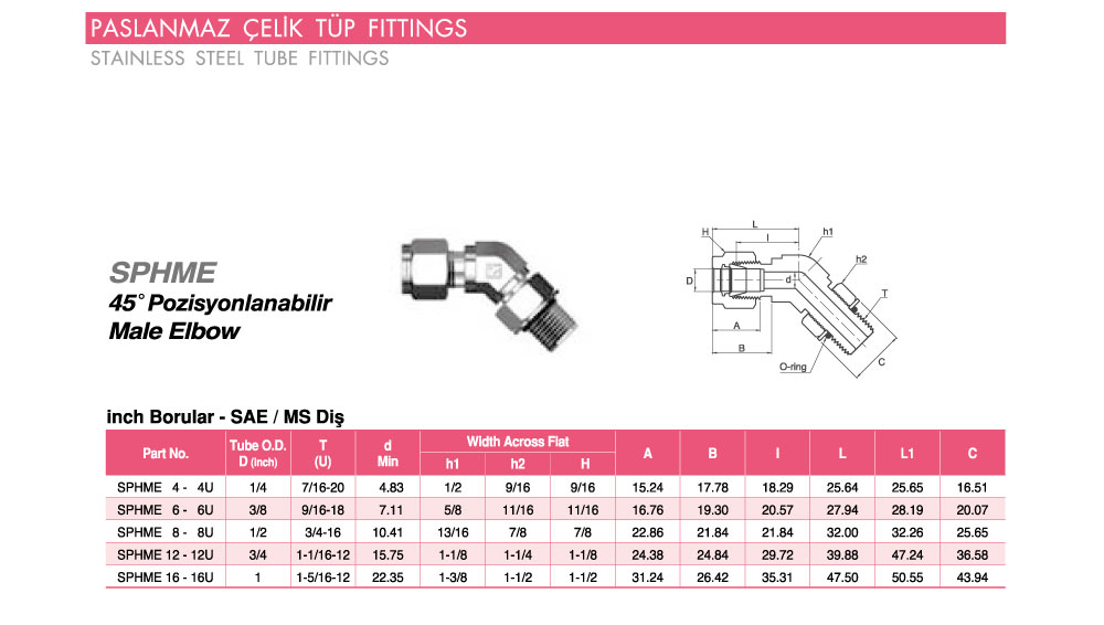 SPHME 45° Pozisyonlanabilir Male Elbow